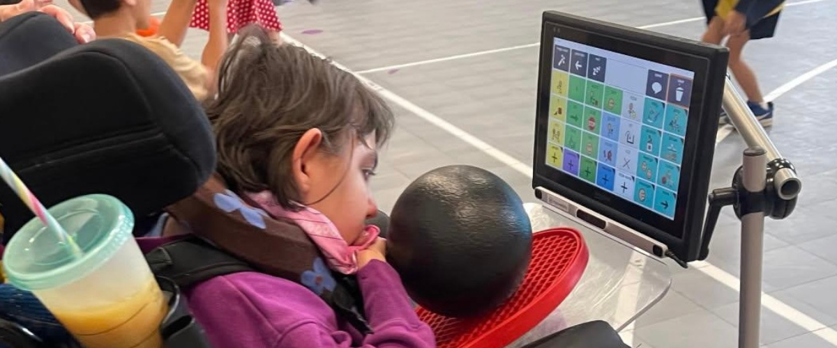 With the help of speech and occupational therapists, the family has tried out various AAC (augmentative and alternative communication) options: