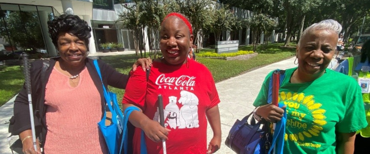 More recently and back in Harris County, we were thrilled to offer refurbished laptops to some of our clients with low-vision disabilities. Among the participants were a group of friends who rode METROLift together. I heard these ladies joke about “the blind leading the blind” as they were leaving shoulder to shoulder, and they really were leading each other out. It was so heartening: a close-knit group sharing these trainings together.